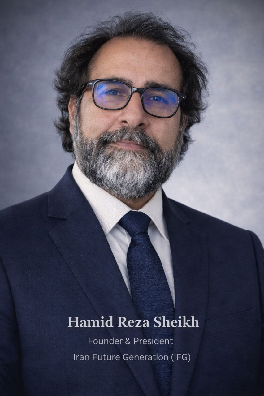 Je, Hamid Reza SHEIKH, en tant que fondateur et leader du « Mouvement Politique Génération Future de l’Iran », m’adresse à vous non pas en tant que demandeur, mais en tant que leader d’un mouvement indépendant et puissant dont la mission est de restaurer la liberté, la démocratie et le bien-être du peuple iranien.